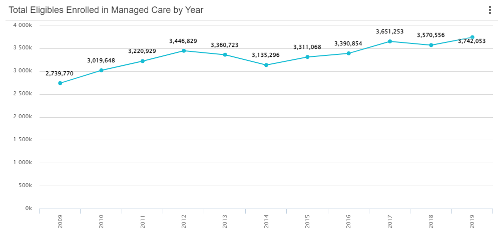 Texas Medicaid Enrollment: Data are from Medicaid.gov's Managed Care Enrollment Summary.